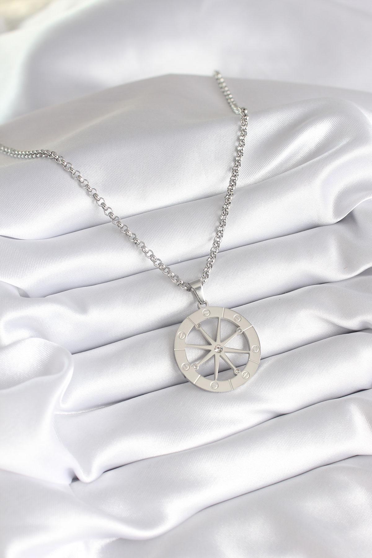 Çelik Gümüş Renk Zirkon Taşlı Rüya Kapanı Model İşeme Detay Kadın Kolye