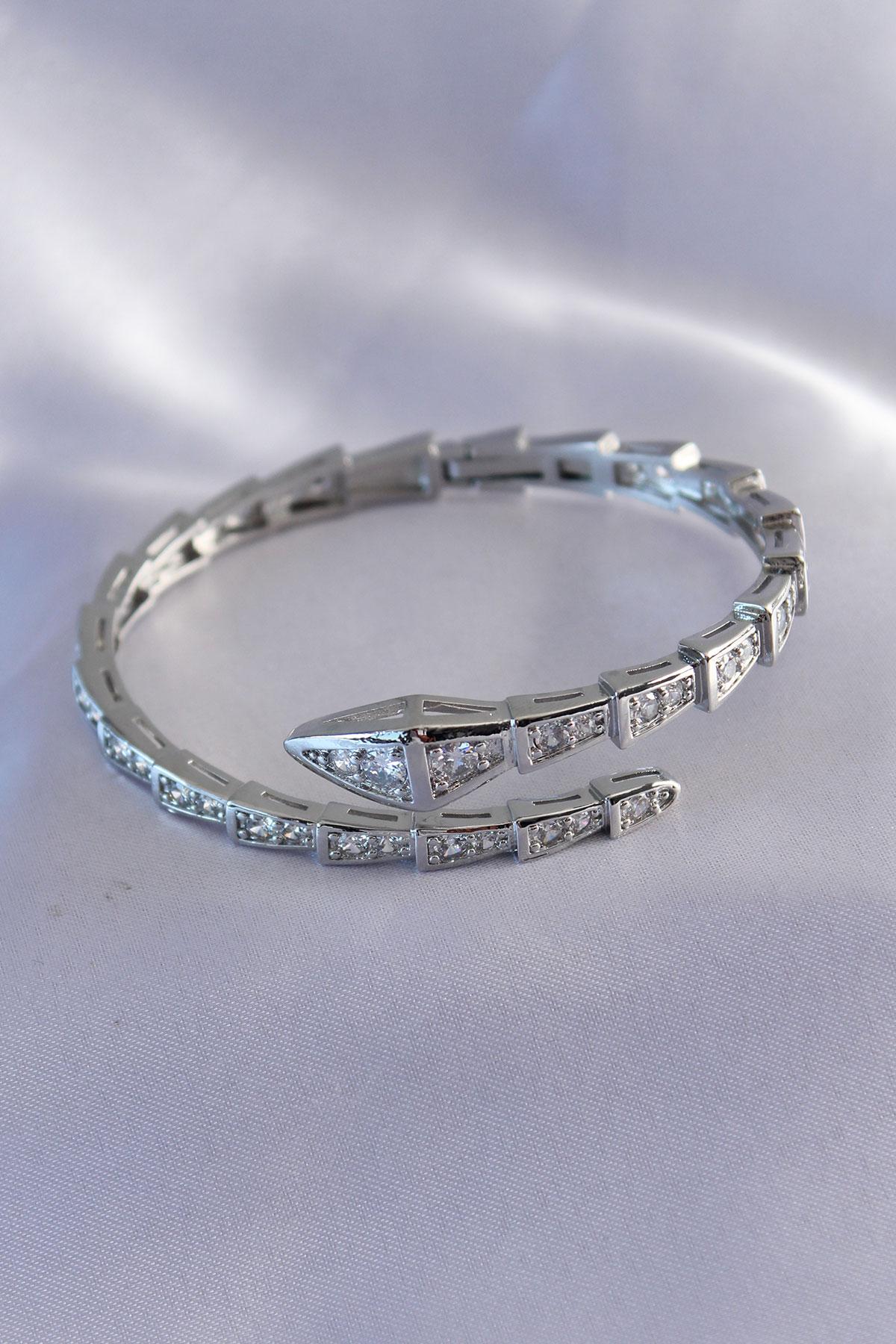 VIP Seri Yılan Model Gümüş Renk Kadın Kelepçe Bileklik