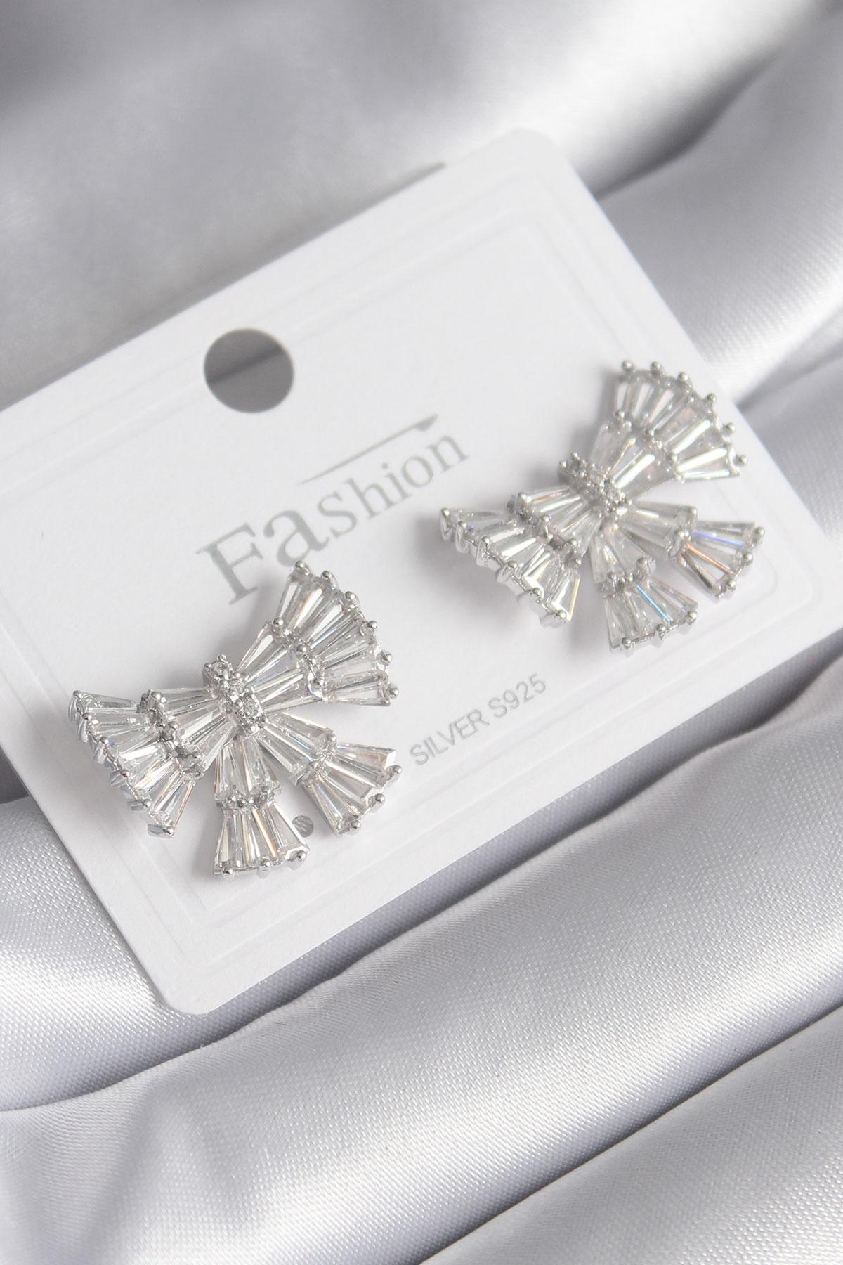 Pirinç Gümüş Renk Zirkon Taşlı Kurdele Model Kadın Küp