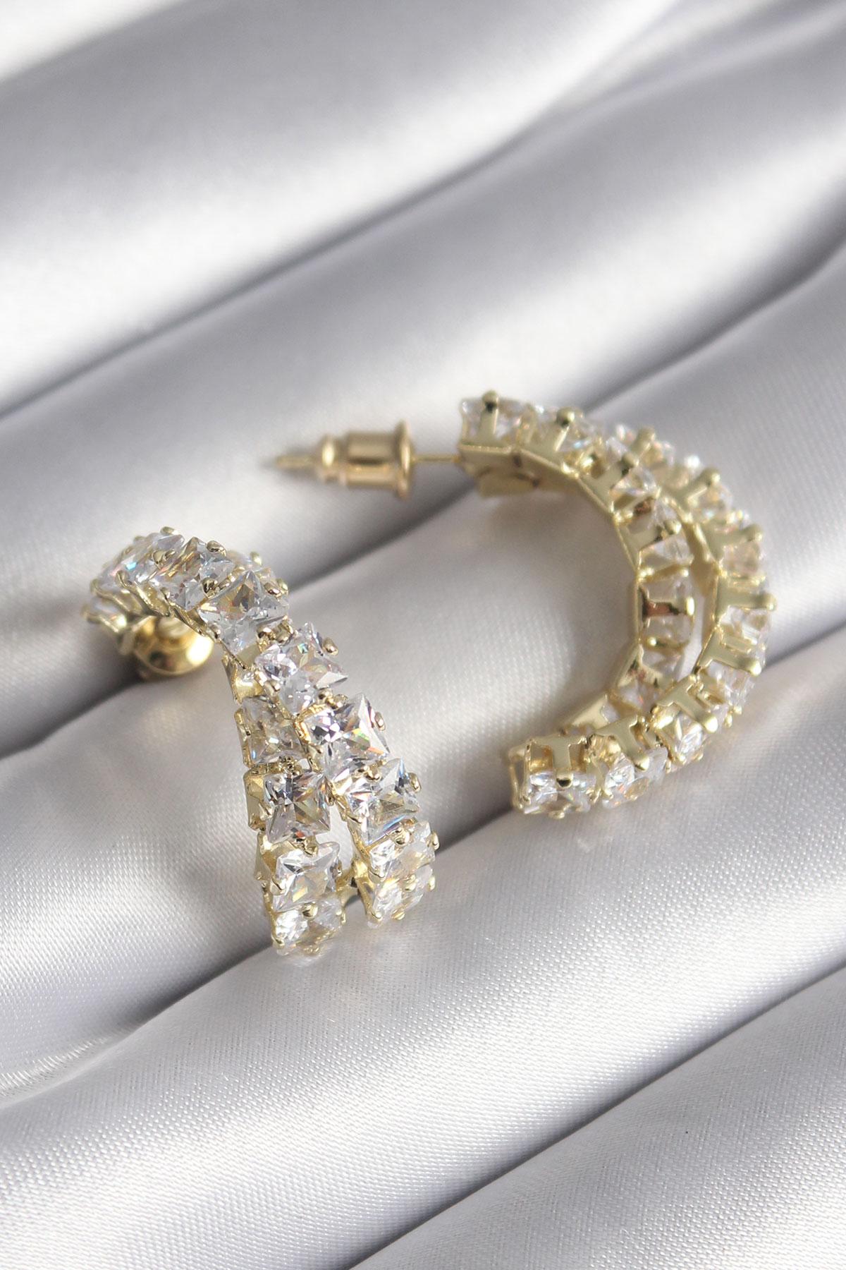 Pirinç Gold Renk Zirkon Taşlı Kadın Küpe
