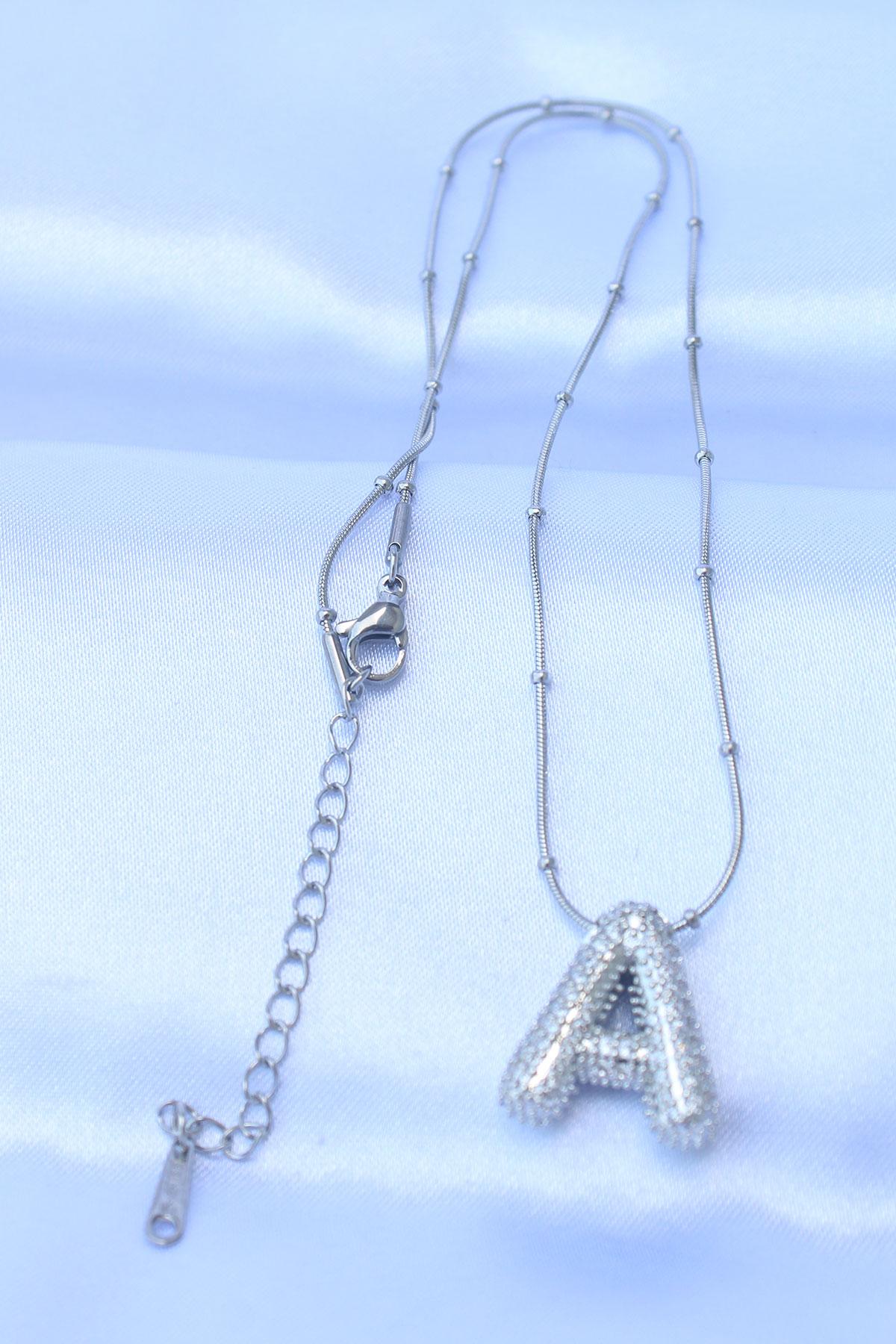 Çelik Zincirli Zirkon Taşlı A Harfli Gümüş Renk Bubble Kolye