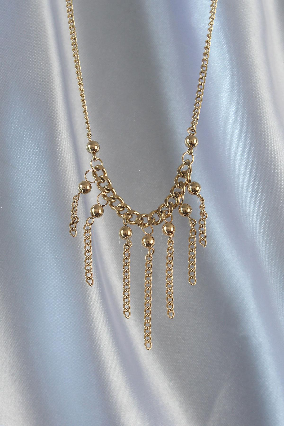 Çelik Zincir Gold Renk Topçuk Detay Sallantılı Zincir Kolye