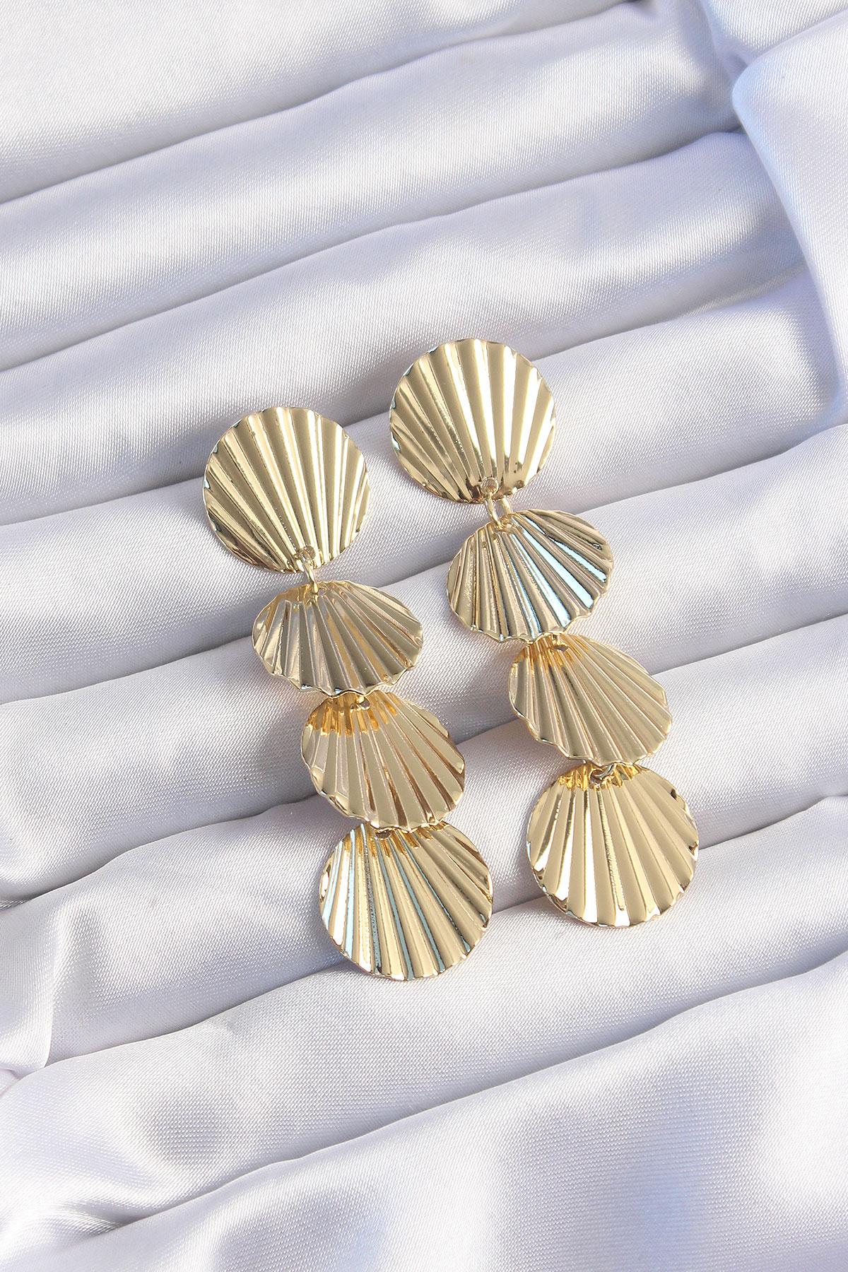 Pirinç Gold Renk Deniz Kabuğu Model Sallantılı Küpe