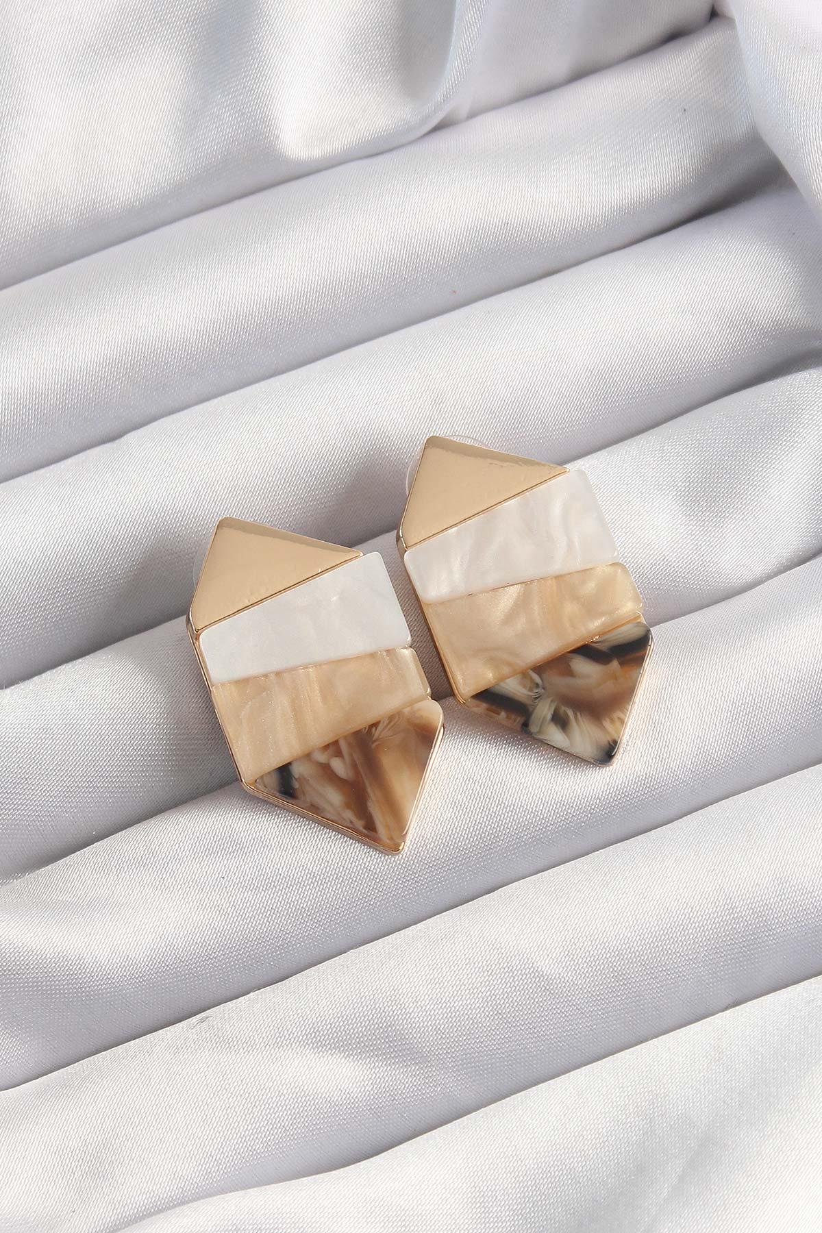 Pirinç Bej Beyaz Renkli Desenli Geometrik Küpe