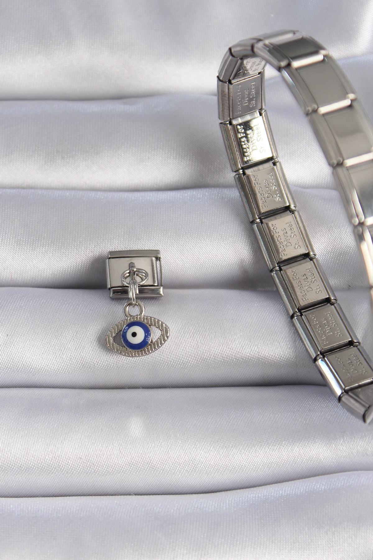 316L Çelik Gümüş Renk Sallantılı Göz Figür Nazar Boncuk Detay Nomination Charm