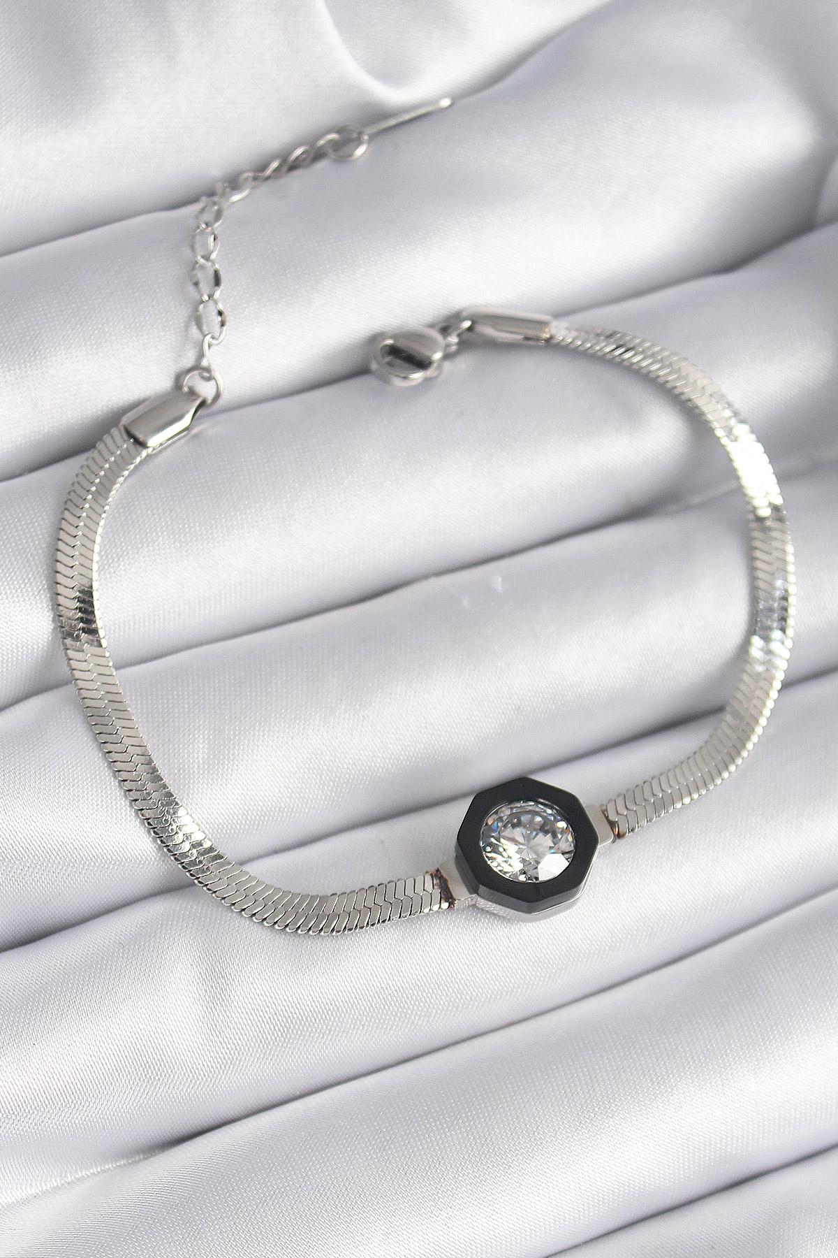 316L Çelik Gümüş Renk Zirkon Taşlı İtalyan Zincir Model Kadın Bileklik