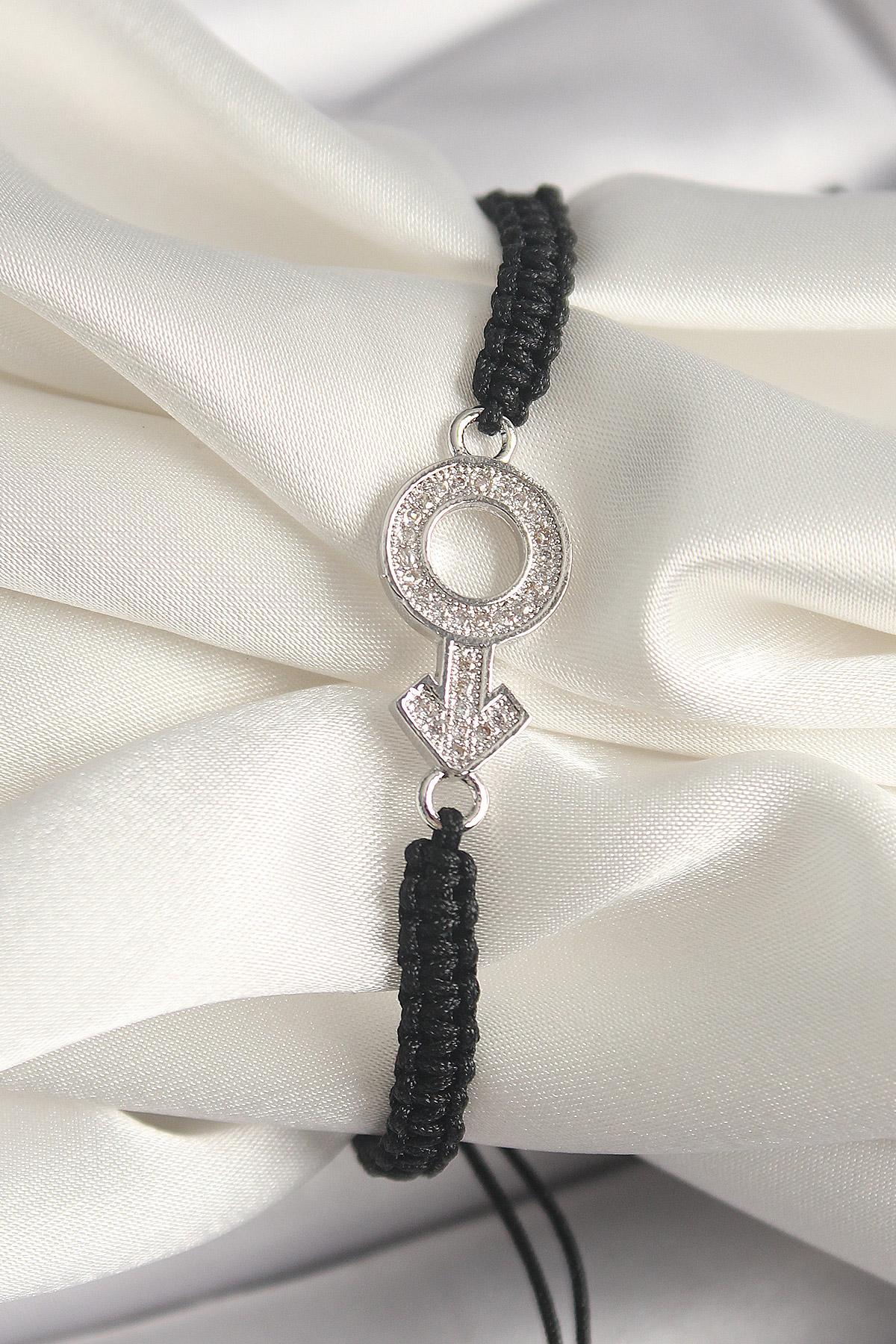 Pirinç Gümüş Renk Zirkon Taşlı Mars Figür Asansörlü Makrome Model Kadın Bileklik