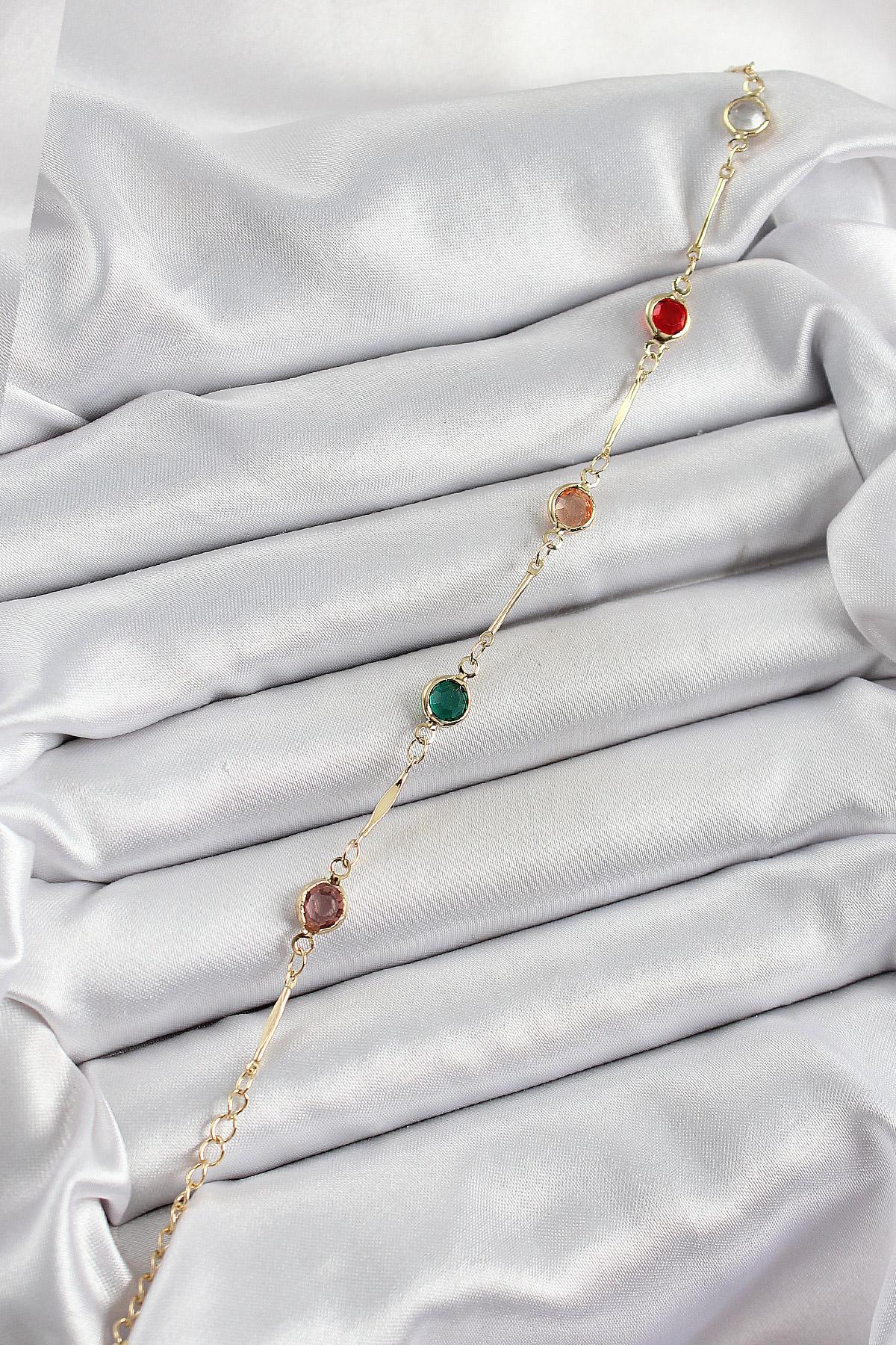 Pirinç Asorti Model Gold Renk Zirkon Taşlı Kadın Bileklik