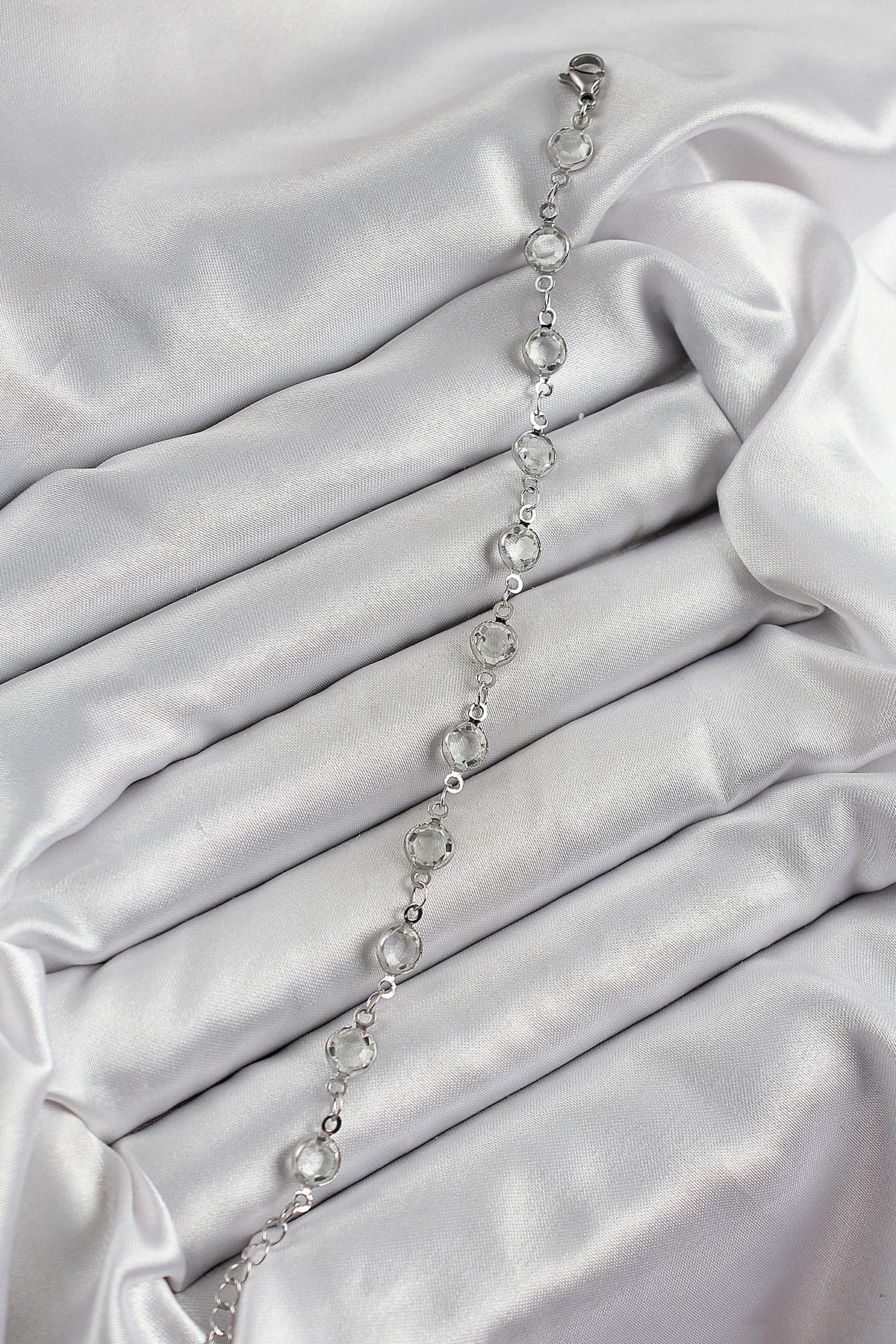Pirinç Gümüş Renk Zirkon Taşlı Bileklik