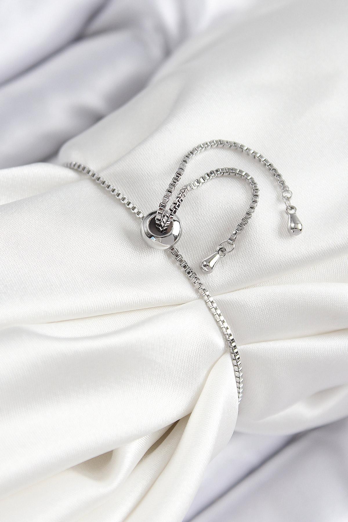Pirinç Zirkon Taşlı X Detaylı Su Yolu Model Gümüş Renk Asansörlü Kadın Bileklik
