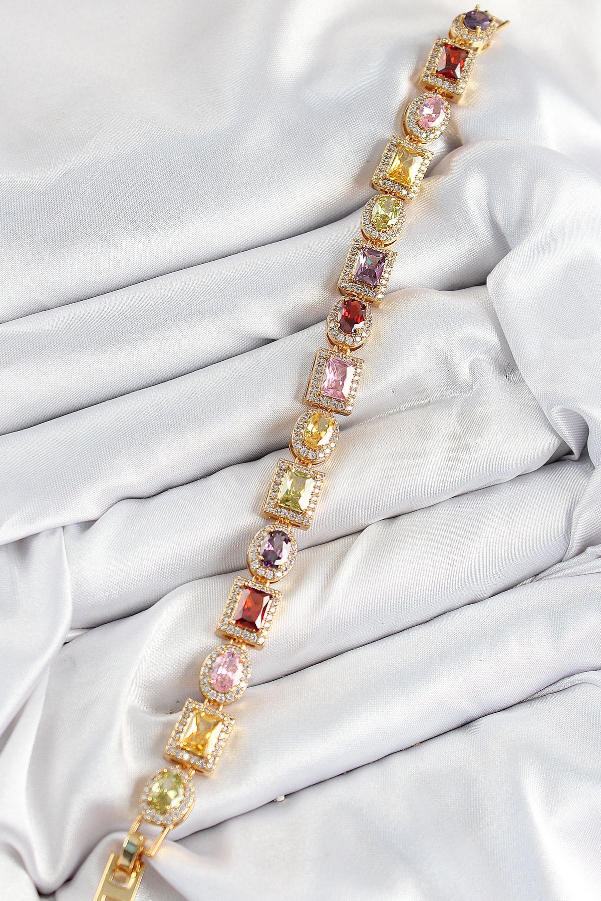 Pirinç Karışık Zirkon Taşlı Baget Model Gold Renk VIP Seri Kadın Bileklik