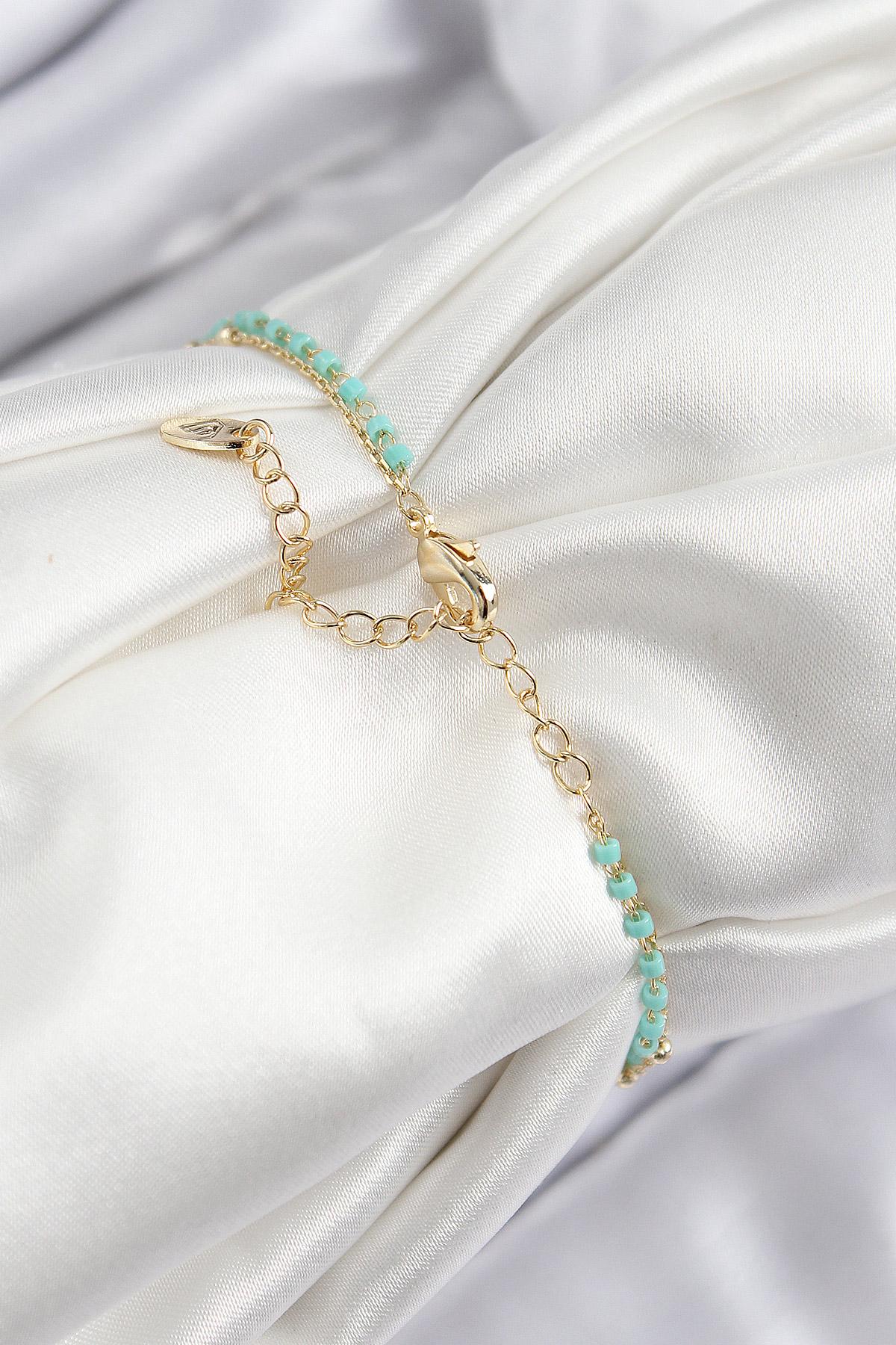 Pirinç Zirkon Taşlı Mavi Boncuklu Model Gold Renk Kadın Bileklik