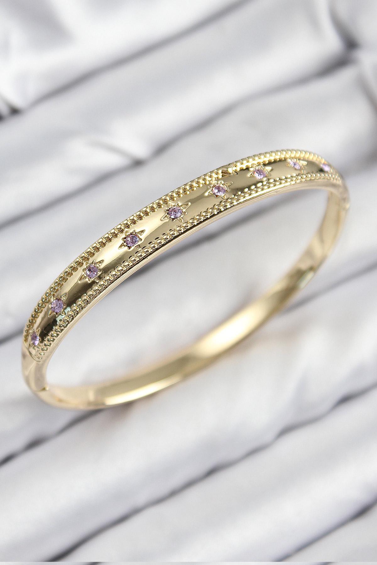 Pirinç Zirkon Taşlı Kutup Yıldızı Model Gold Renk Kadın Kelepçe