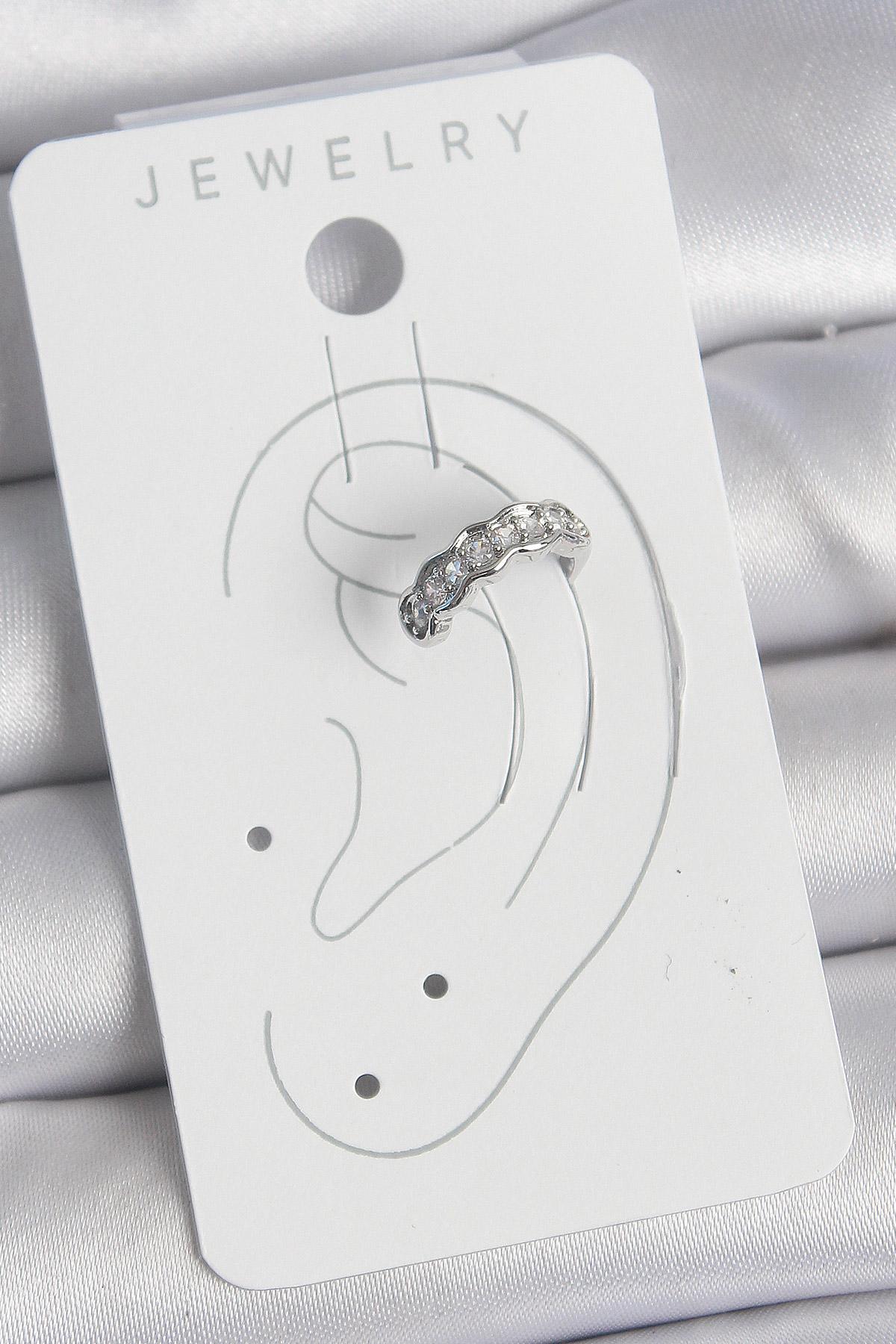 Pirinç Gümüş Renk Zirkon Taşlı Kıkırdak Model Kadın Küpe